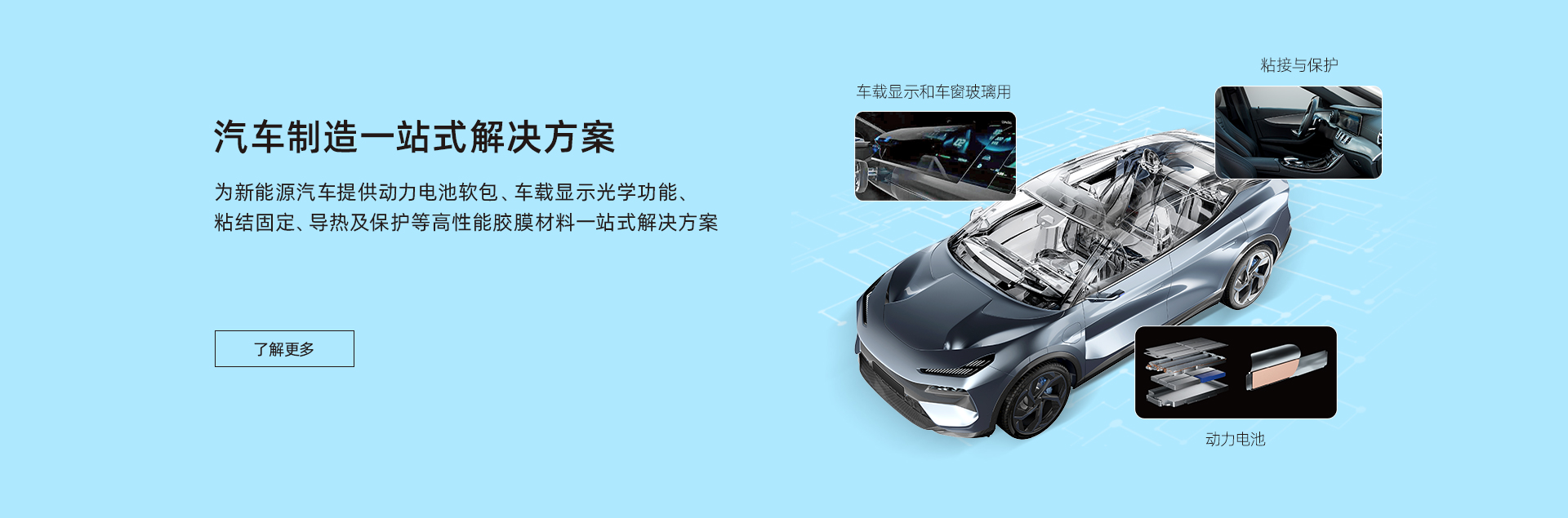 致力于為汽車制造、消費電子、智慧顯示端口等行業(yè)客戶提供包括新能源材料、電子功能材料、光電顯示材料、有機硅材料在內的產(chǎn)品研發(fā)、生產(chǎn)、銷售于一體化服務,建立了專業(yè)的市場營銷與技術服務團隊,為客戶提供高性能膠膜材料一站式解決方案。